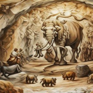 Finally, under cover of darkness, the people spread out, placing the mammoth between themselves and the riverbanks. None had ever faced a creature like this, and no one knew what to do, but it was too late to turn back now. The great animal moved to face them.