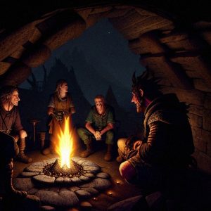 Indeed, some of the larger and stronger of their group began to seem more and more aggressive as the band returned to their settlement-camp, bearing the carcass on litters, making their slow way home from their adventures. Eventually one family’s tent and some of their possessions were smashed by a pair wrestling violently one night. This event gave rise to a meeting, where the people decided to set aside time for the more energetic and strong members of their population to practice fighting. And so their strongest became stronger, even as the people’s sense of law began to form.