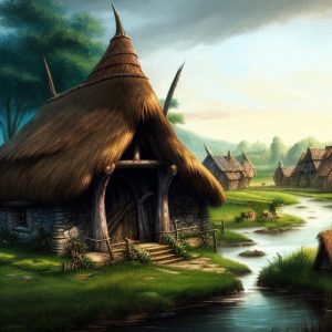 After many months of peace, the band set forth again, it’s numbers bolstered and it’s spirits renewed. First they wandered through the desert to the south of the settlement they now called Mescida, and found new foods and seeds to plant that they had missed before. Next they went toward the forests to the west. Here they found a settlement superior to any they had ever conceived of, with elaborate wooden timber structures. After a pleasant meeting with what amounted to the council of The People, it was decided to merge the two settlements into one new tribe. The new camp was called Korchub, and lay in pleasant country just south of the river where they had hunted the mammoth.